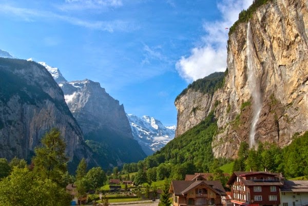 The Engstligen falls near Adelboden in the Bernese Oberland are the second highest waterfalls in Switzerland. They are listed in the Swiss inventory of landscapes of national significance. The numerous mountain streams of Engstligenalp join together near its northern exit and fall in two steps over the rocks 600 m into the Engstligen valley where they become the official beginning of the Engstlige river. In winter, the Engstligen falls are a paradise for ice climbers.