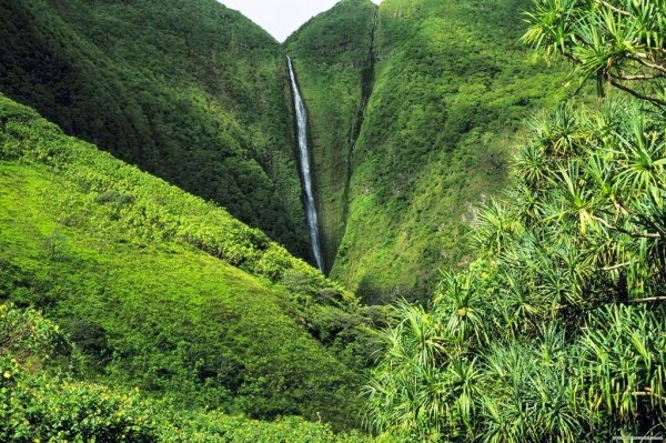 Hi’ilawe Falls has a total height of 1450 feet 442 meters, with a tallest single drop of 1201 feet 366 meters and it is located in USA, Hawaii (Big Island), Waipio Valley. Hi’ilawe Falls is the most famous waterfall in Waipio Valley. The falls share the same cliff wall with the often dry Hakalaoa Falls. Lalakea Stream above the brink of Hi’ilawe Falls had been partially dammed to provide water for developments in the area.