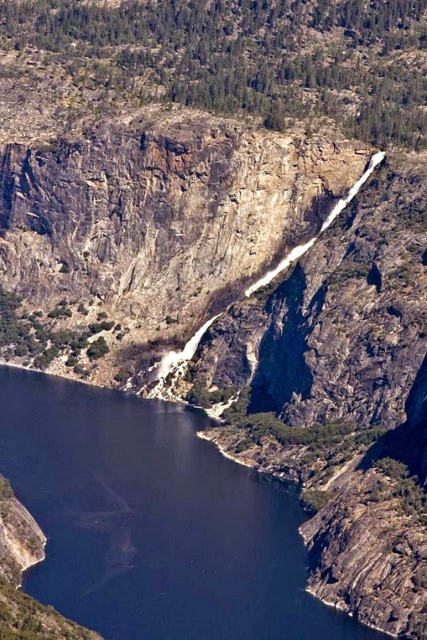 Illilouette Fall is a 370 foot (112 m) waterfall in Yosemite National Park. It is located in a small side canyon directly across from Vernal Falls, and is visible from the trail to Vernal and Nevada Falls. The best vantage point is from the Panorama Trail as it descends from Glacier Point.