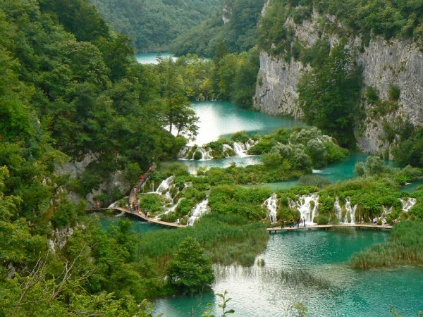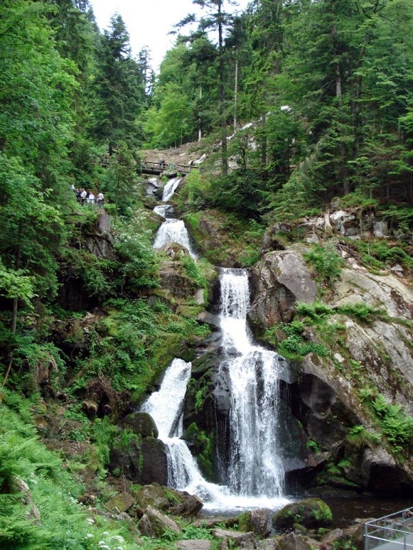 The Cascata delle Marmore (Marmore’s Falls) is a man-made waterfall created by the ancient Romans. Its total height is 165 m (541 feet), making it one of the tallest in Europe and the tallest man-made waterfall in the world. Of its 3 sections, the top one is the tallest, at 83 m (272 feet). It is located 7.7 km from Terni, a provincial capital of the Italian region of Umbria. Its source is a portion of the waters of the river Velino (the rest of the river flows into a hydroelectric power plant), after flowing through Piediluco lake near the community of Marmore. It pours into the valley below formed by the river Nera. Its flow is turned on and off according to a published schedule, to satisfy the needs of tourists and the power company alike. Tourists try to be there the moment the gates are opened to see the powerful rush of water.
