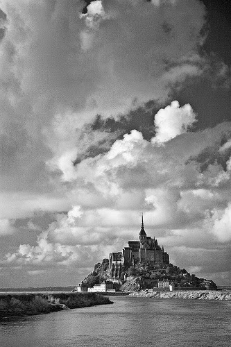 The island has held strategic fortifications since ancient times, and since the eighth century AD has been the seat of the monastery from which it draws its name. The structural composition of the town exemplifies the feudal society that constructed it. On top God, the abbey and monastery, below this the Great halls, then stores and housing, and at the bottom, outside the walls, fishermen and farmers' housing.